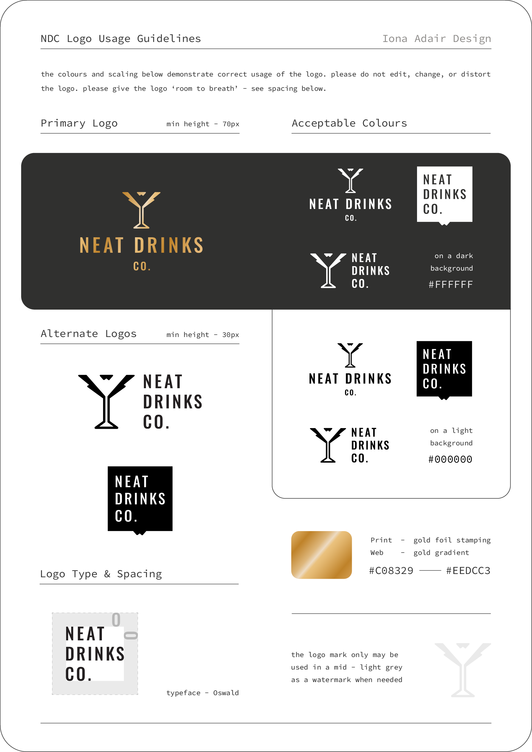 The Neat Drinks Company - a mobile drinks company. The images below are an example of what you might receive as part of a premium branding package - a business card design, scalable logo with size variations, and brand guidelines.